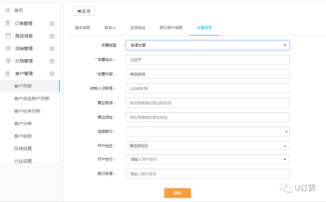 支持“增值税发票“、”普通发票”、“线下联系”三种发票类型。设置好后,点击保存就可以使用。