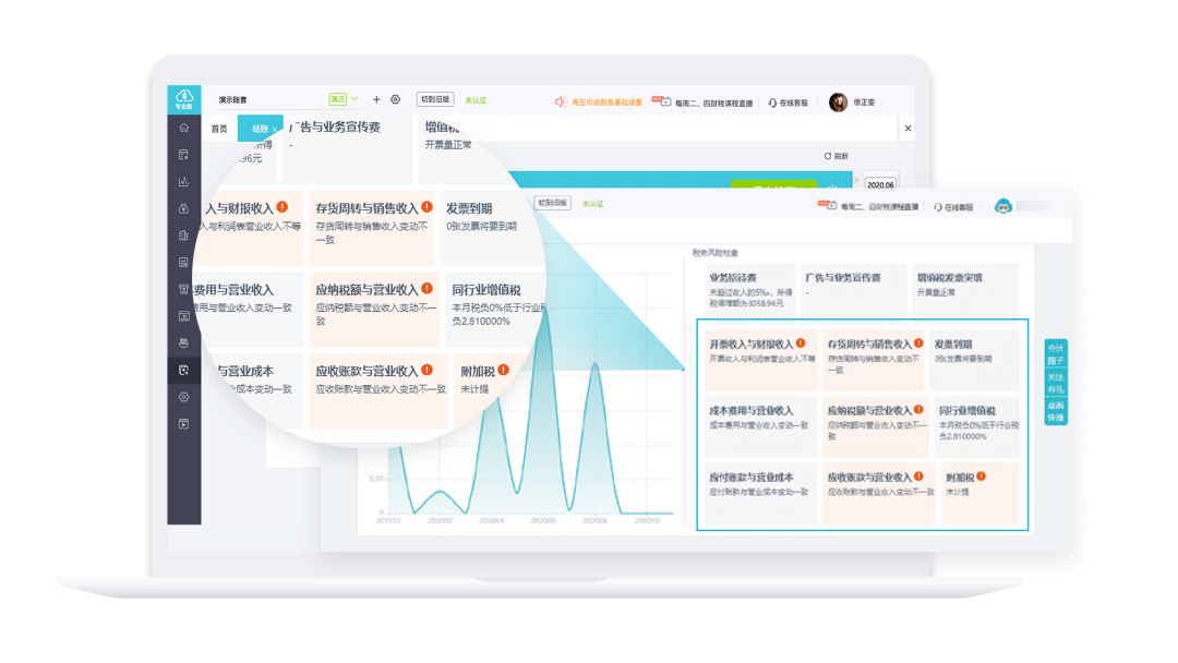对于许多小微企业来说,并没有资源丰富的专业财税咨询团队来把控财税风险,那么小微企业该怎么办呢?打开畅捷通好会计,首页就可以看到直观的税务风险分析/检查,老板想看的各类项目清晰列出,而且与金税三期重点指标保持一致,不在工位一样随时作为老板的贴身管家。“好会计”还可以进行智能发票测算,配合多种税务筹划小工具,帮助老板和企业合理纳税、防止多交税,避免税务风险、不踏税务雷池,老板开心又省钱!